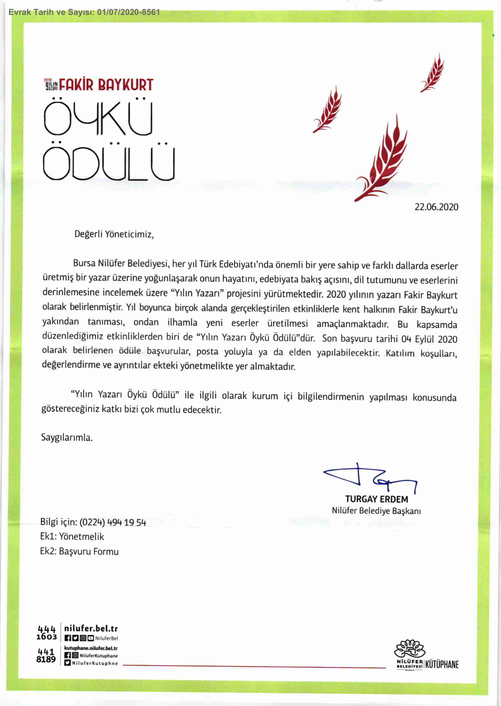 Ana Sayfa / Duyurular / 2020 Yılın Yazarı Fakir Baykurt Öykü Ödülü