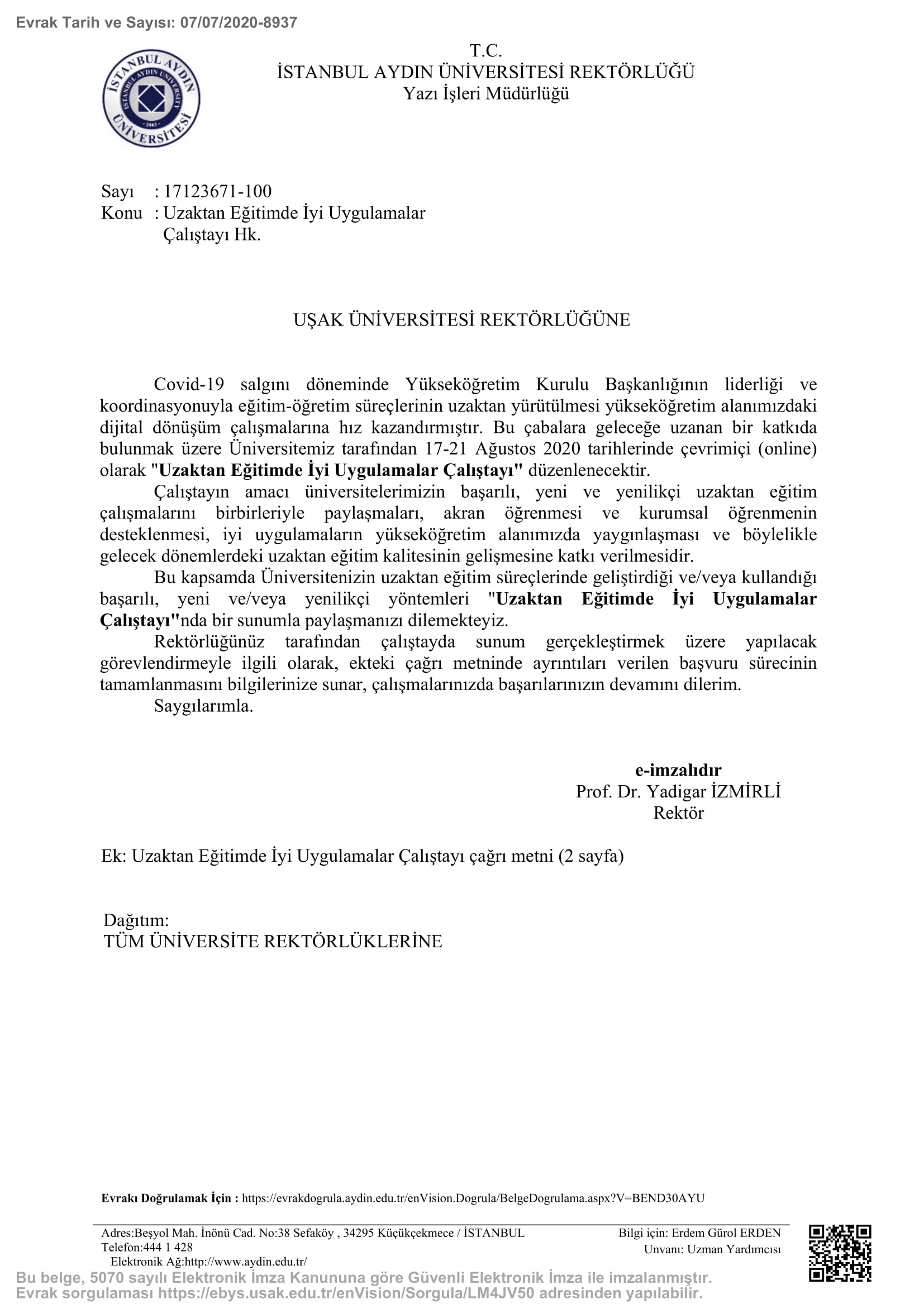 Ana Sayfa / Duyurular / Uzaktan Eğitimde İyi Uygulamalar Çalıştayı