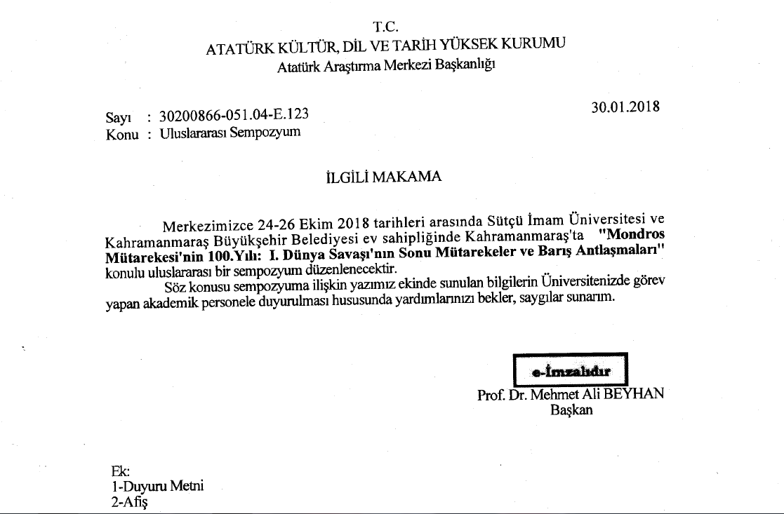 Ana Sayfa / Duyurular / Mondros Mütarekesi'nin 100. Yılı: I. Dünya Şavaşı'nın Sonu Mütarekeler ve Barış Antlaşmaları