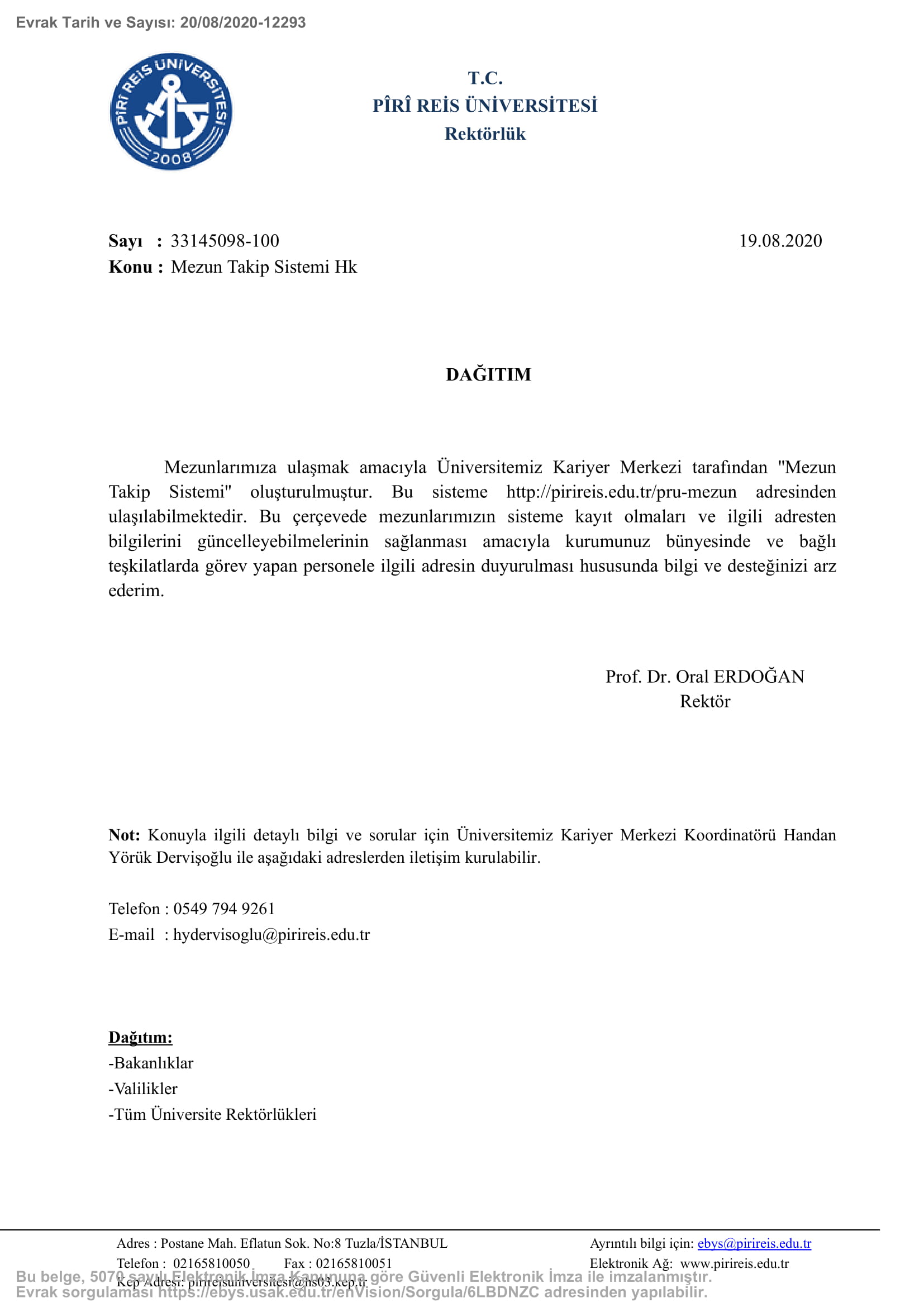 Ana Sayfa / Duyurular / Mezun Takip Sistemi