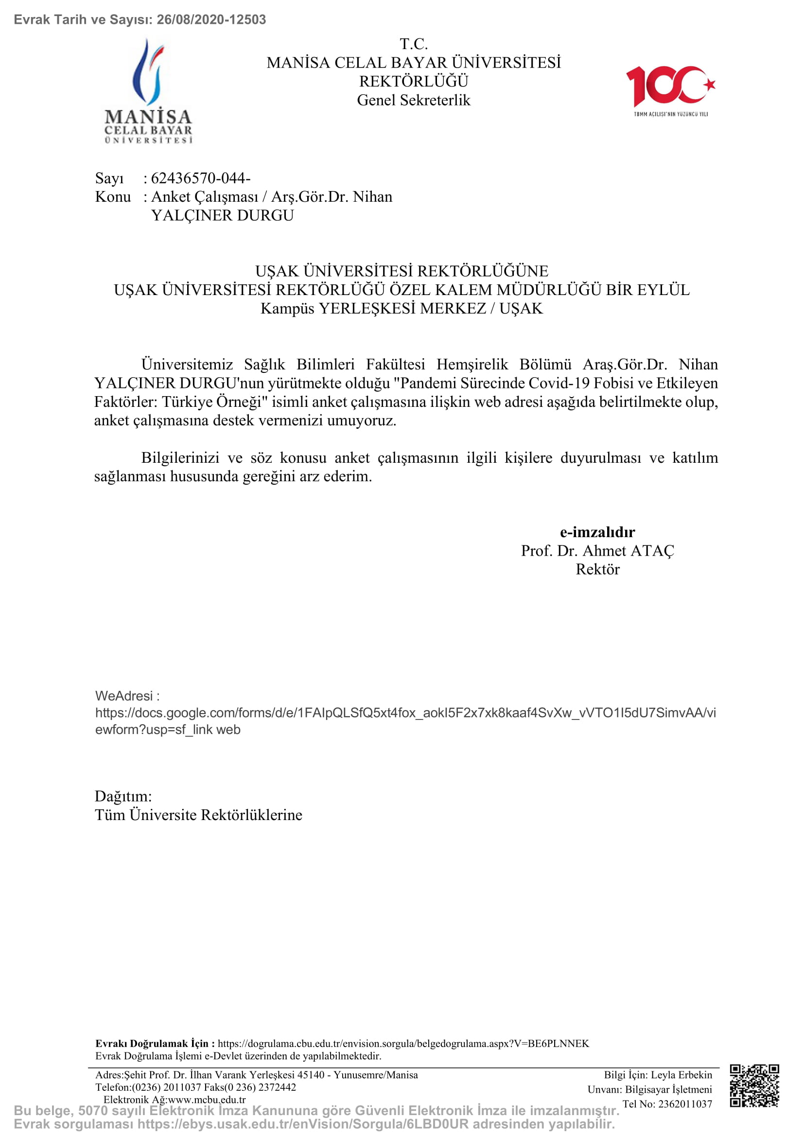 Ana Sayfa / Duyurular / Anket Çalışması / Arş.Gör.Dr. Nihan YALÇINER DURGU