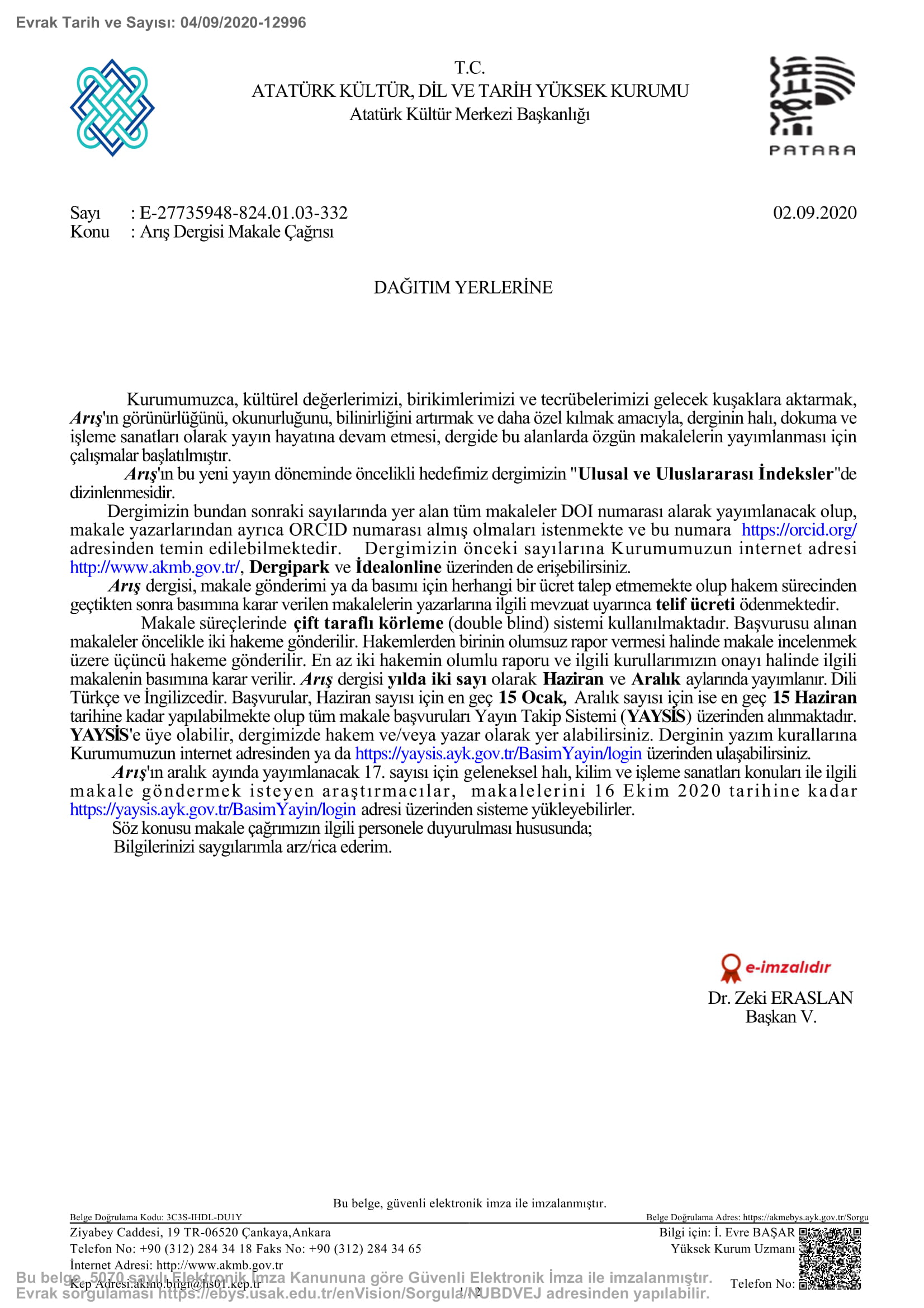Ana Sayfa / Duyurular / Arış Dergisi Makale Çağrısı