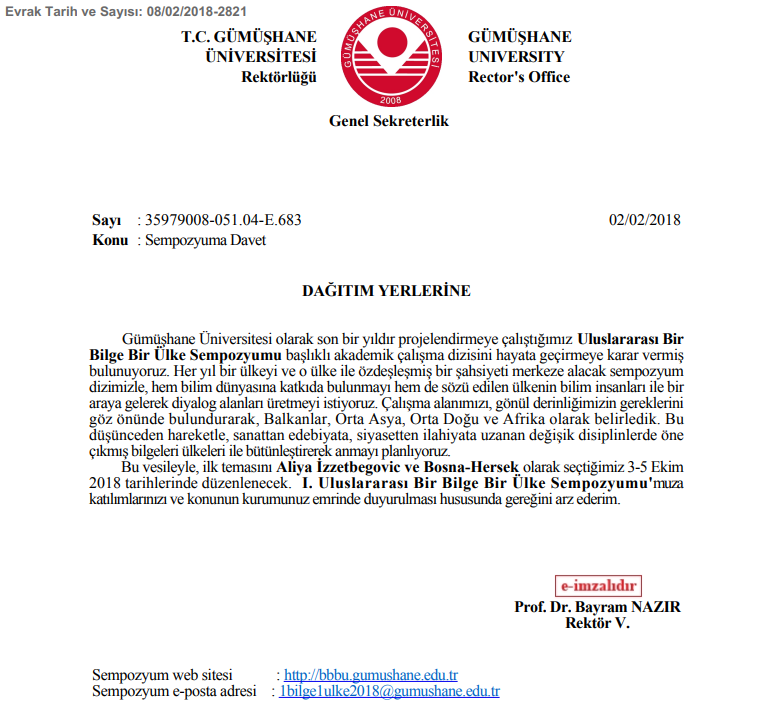 Ana Sayfa / Duyurular / I. Uluslararası Bir Bilge Bir Ülke Sempozyumu