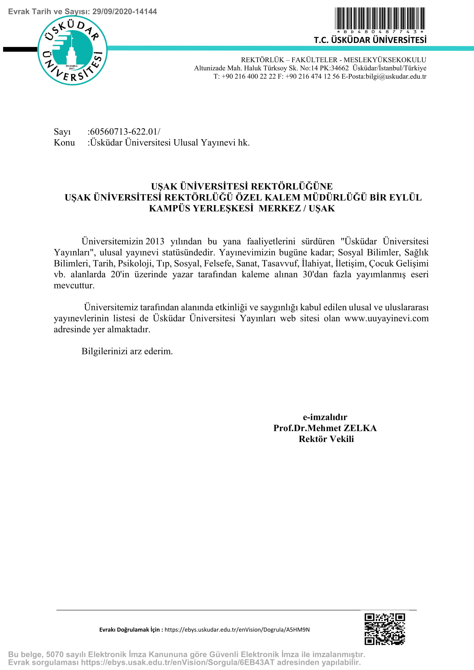 Üsküdar Üniversitesi Ulusal Yayınevi hk.