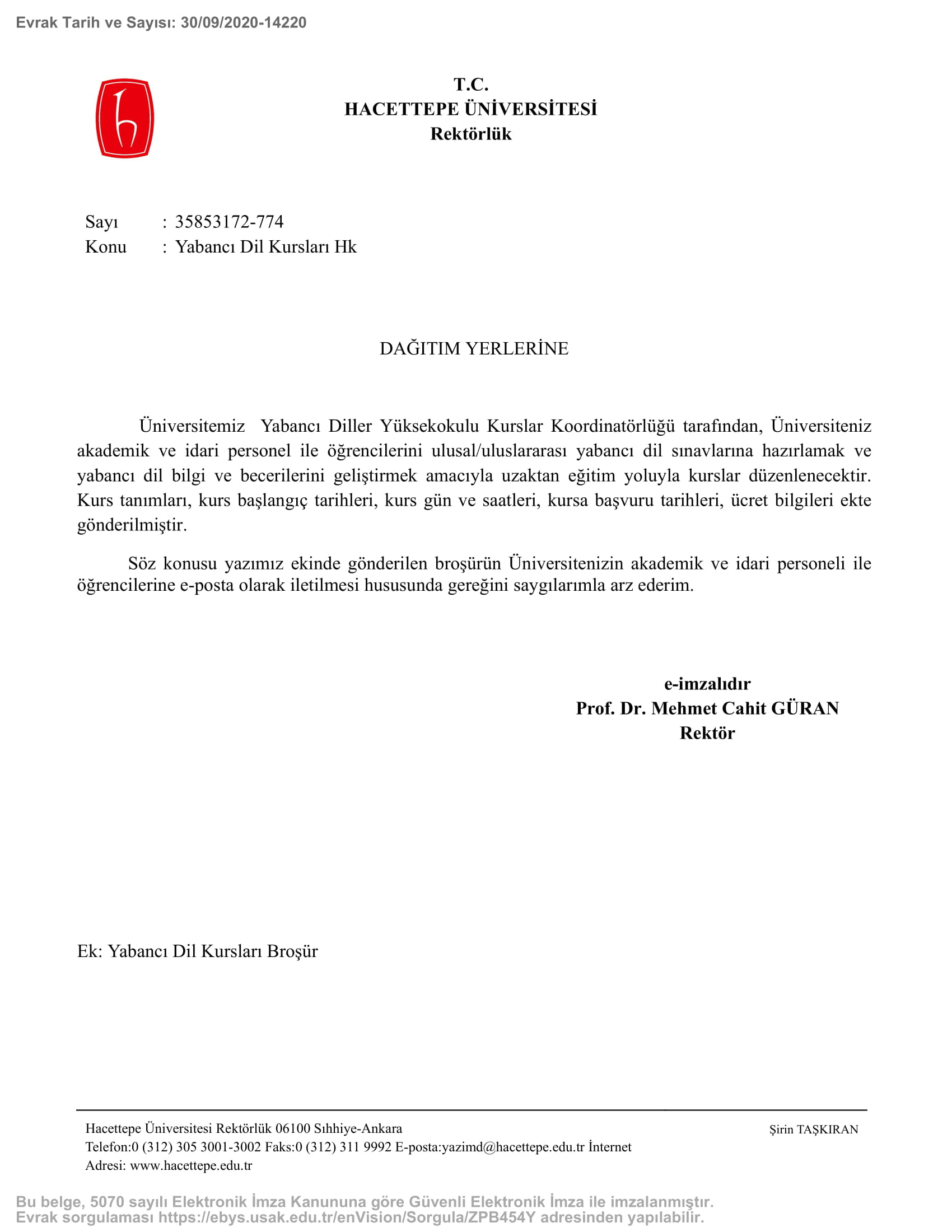 Yabancı Dil Kursları Broşür için tıklayınız.