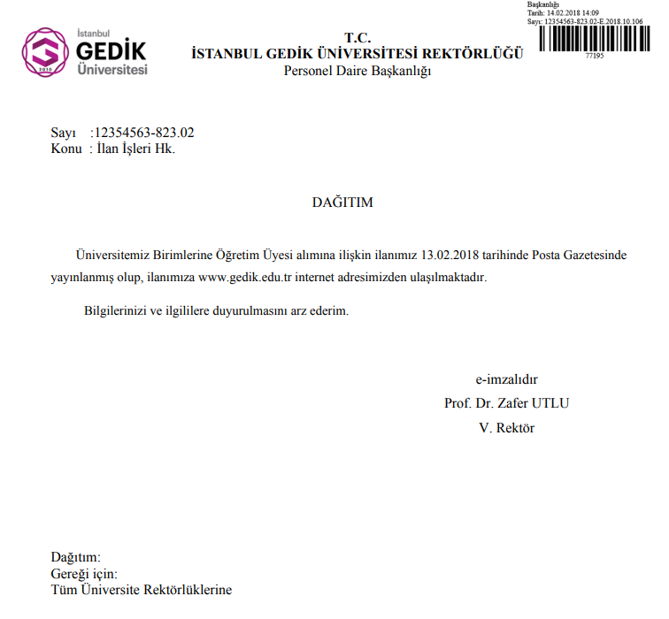 Ana Sayfa / Duyurular / Gedik Üniversitesi Öğretim Üyesi alımına ilişkin ilan