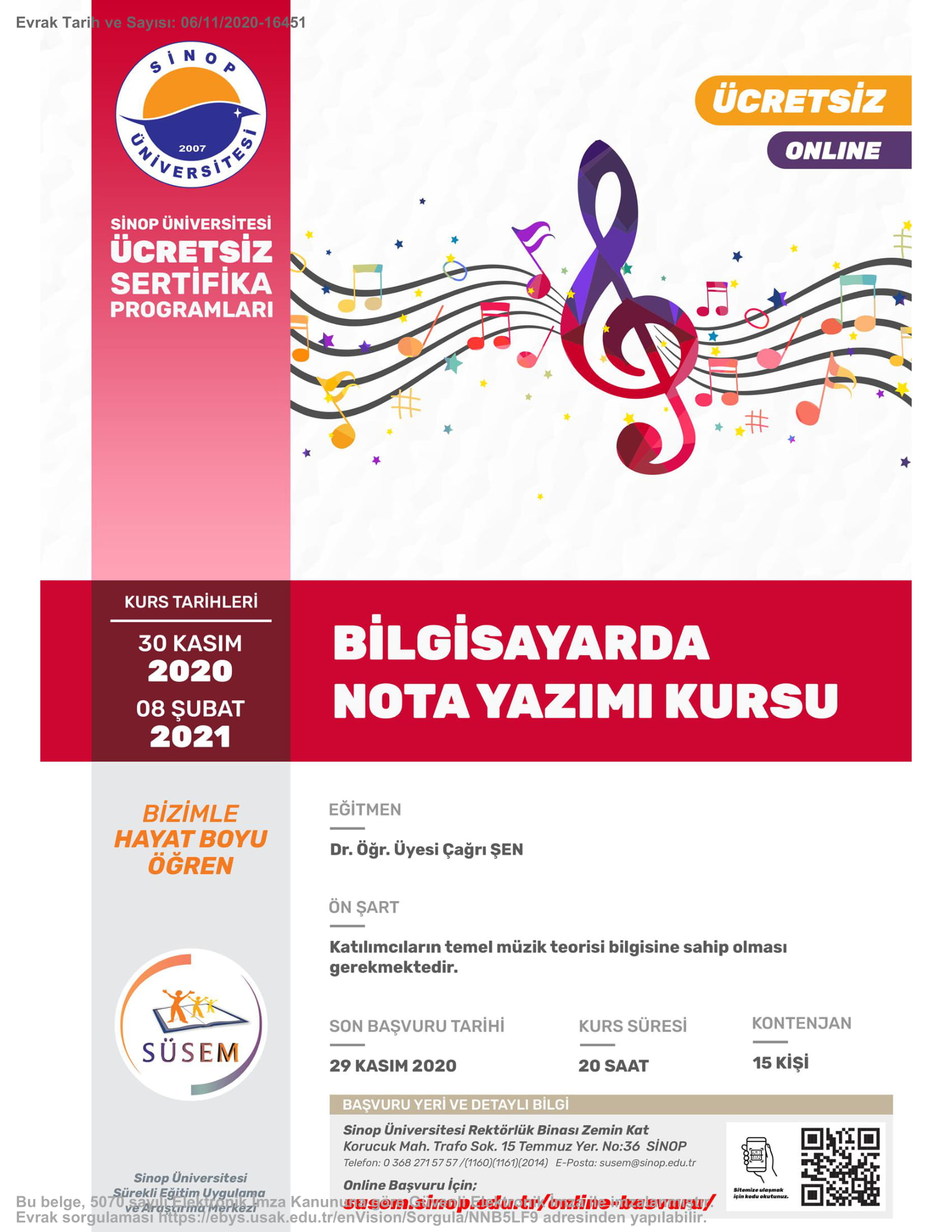 Ana Sayfa / Duyurular / Bilgisayarda Nota Yazımı Kursu Afişi