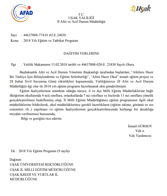Ana Sayfa / Duyurular / 2018 Yılı Eğitim ve Tatbikat Programı