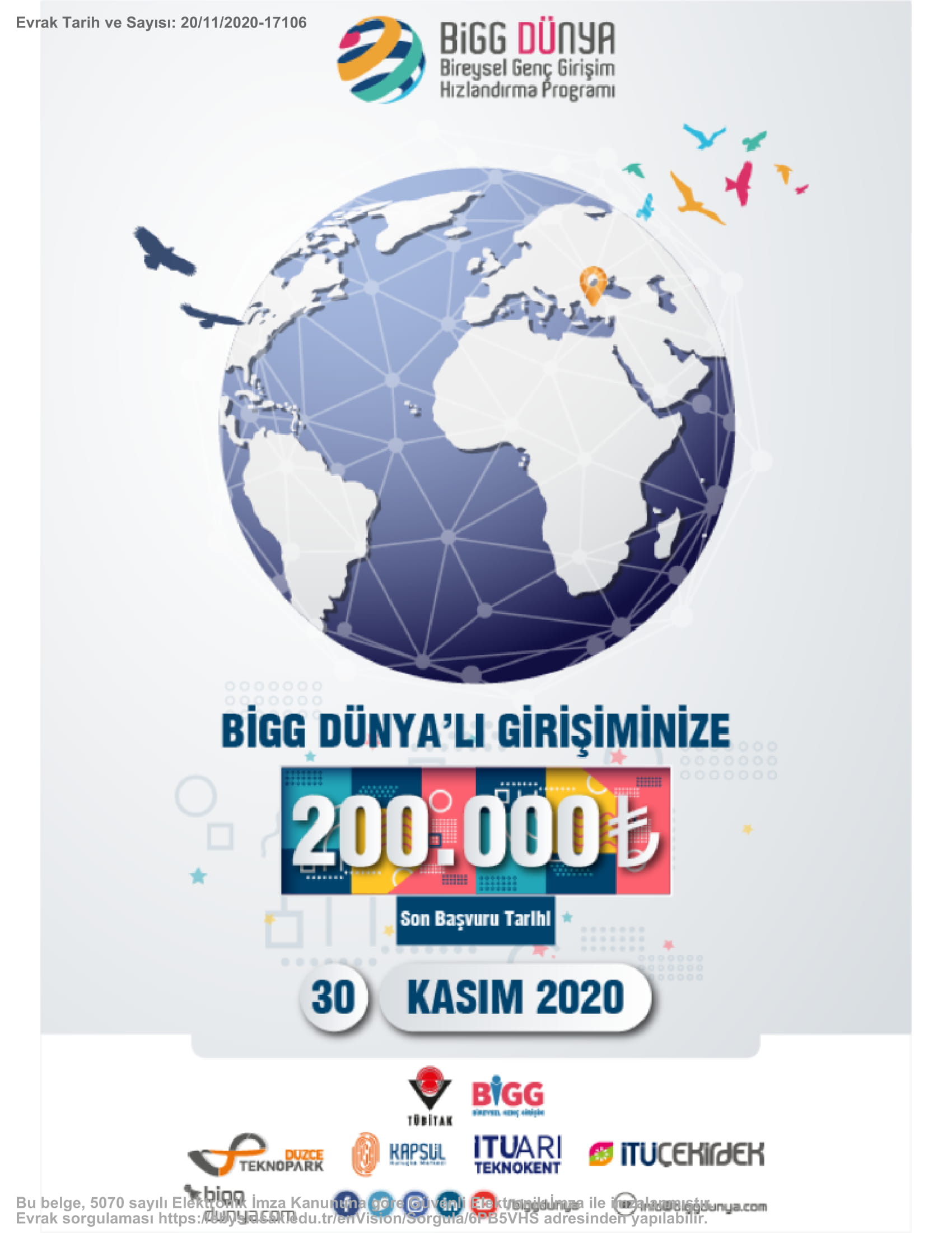 Ana Sayfa / Duyurular / TÜBİTAK 1512 BİGG DÜNYA 2020/1. Dönem Duyuruları