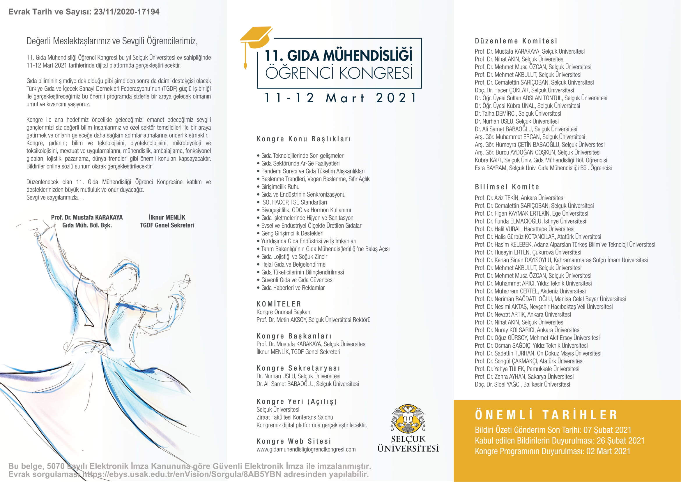 Ana Sayfa / Duyurular / 11. Gıda Mühendisliği Öğrenci Kongresi