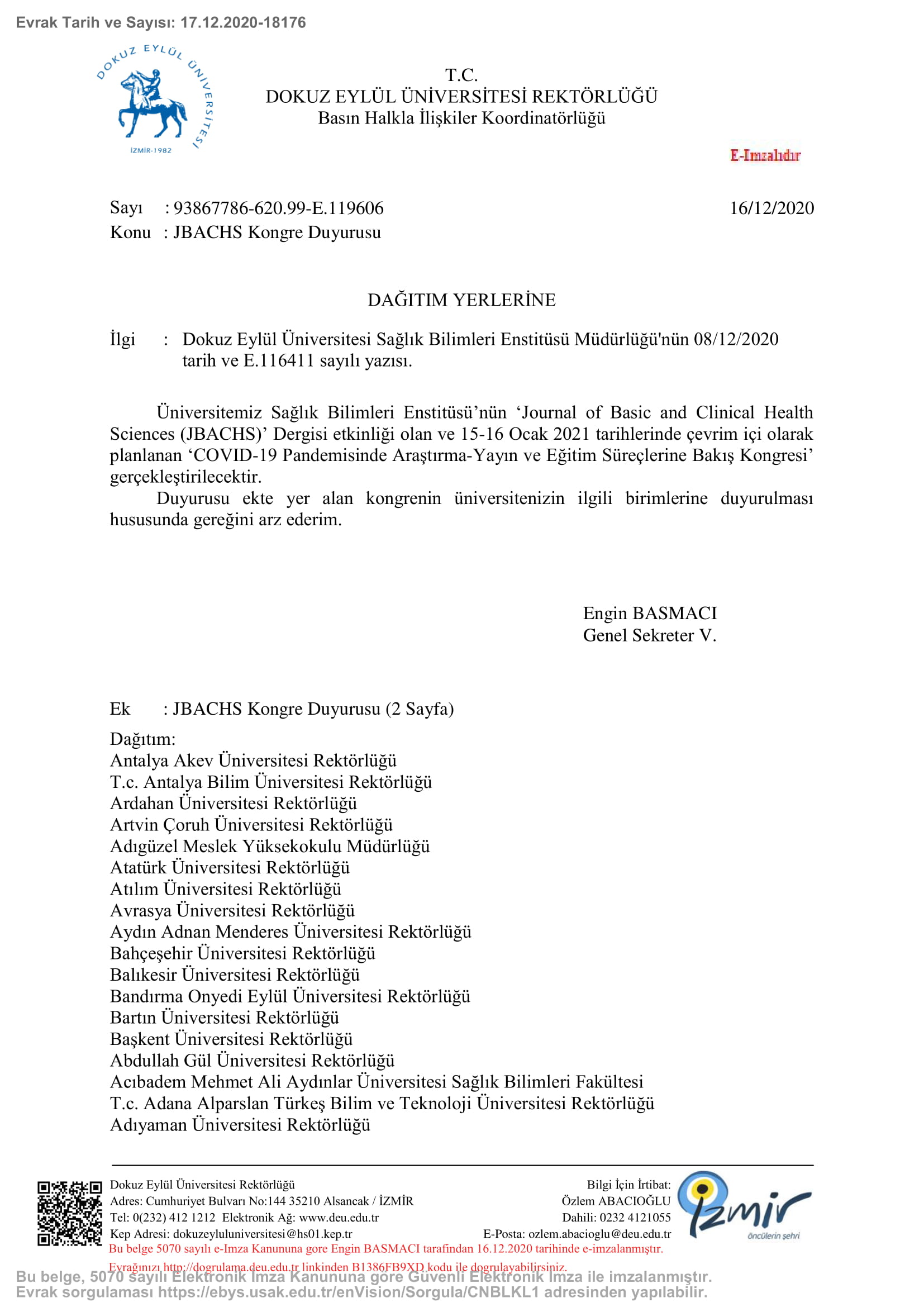 JBACHS Kongre Duyurusu için tıklayınız.
