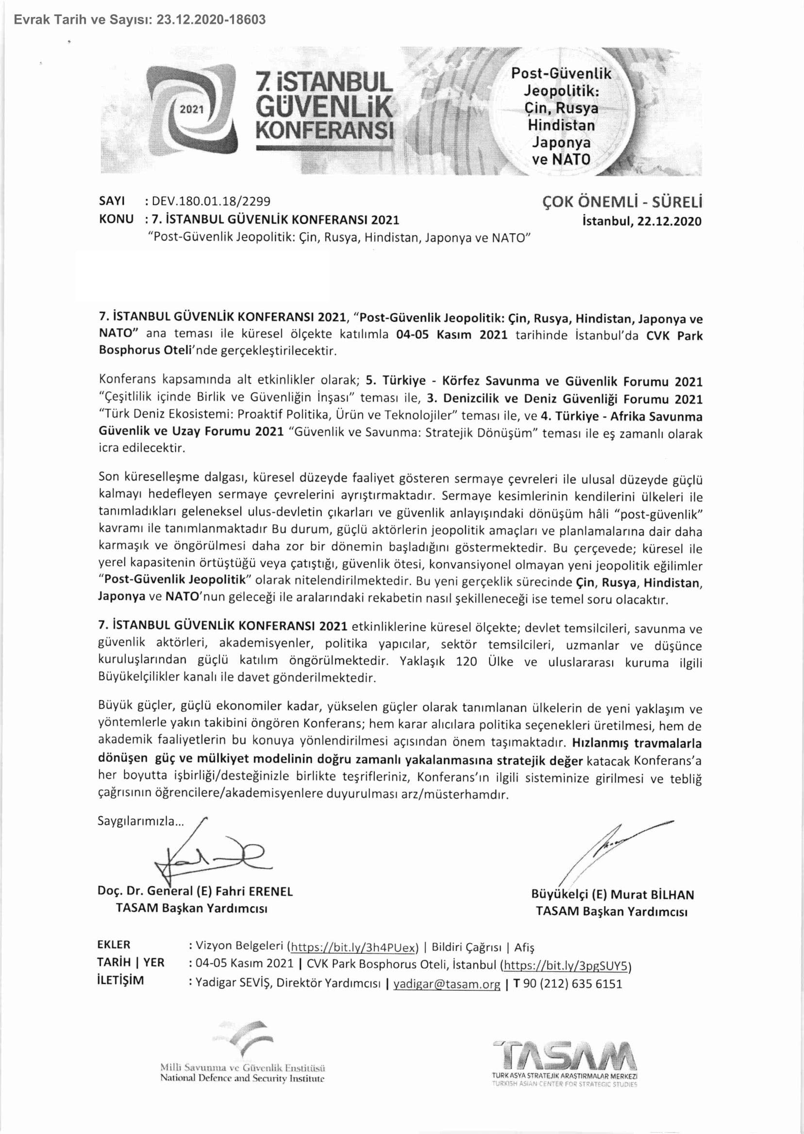 Ana Sayfa / Duyurular / 7. İstanbul Güvenlik Konferansı 2021