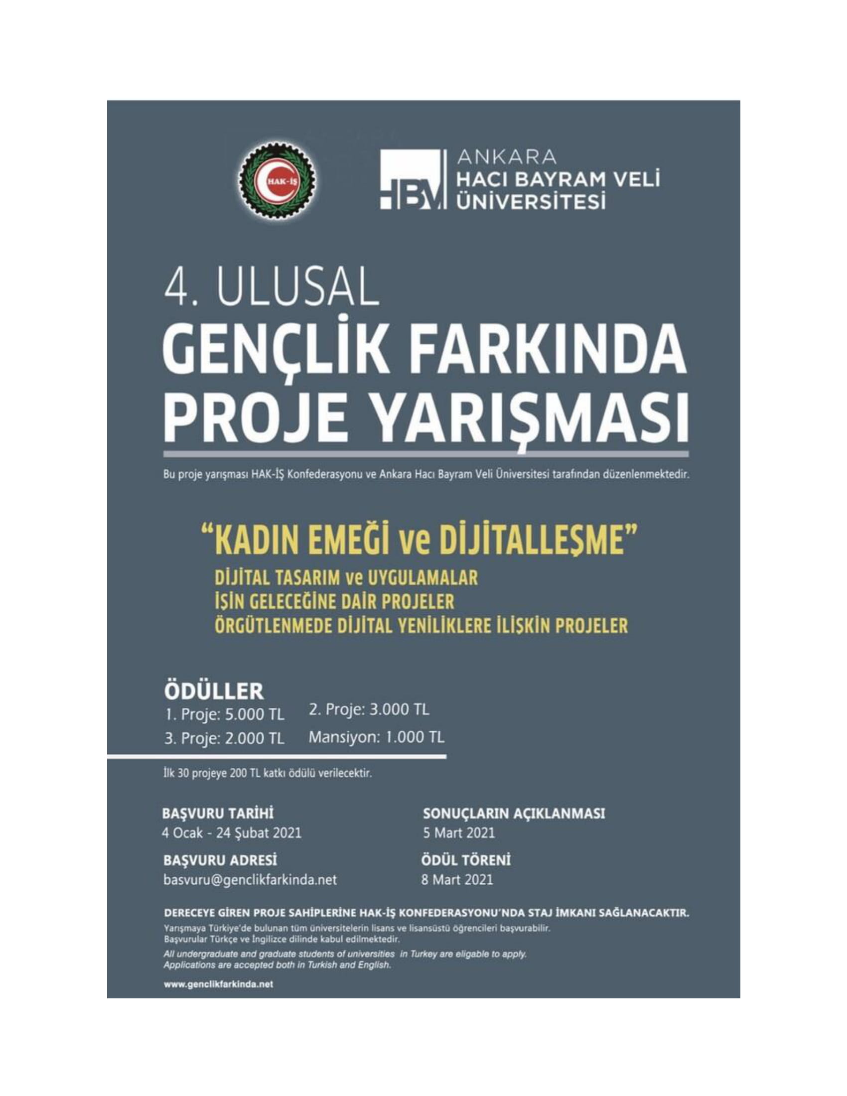 Ana Sayfa / Duyurular / 4. Ulusal Gençlik Farkında Proje Yarışması