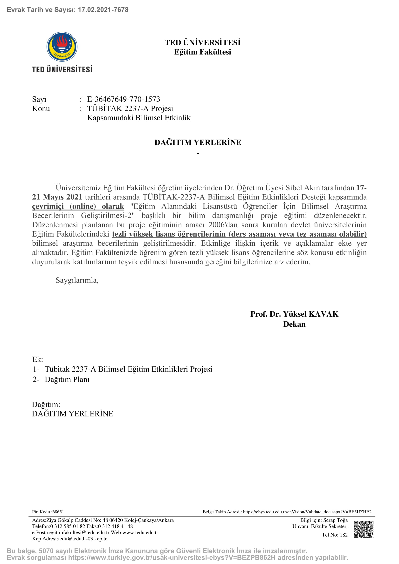 TÜBİTAK 2237-A Projesi Kapsamındaki Bilimsel Etkinlik