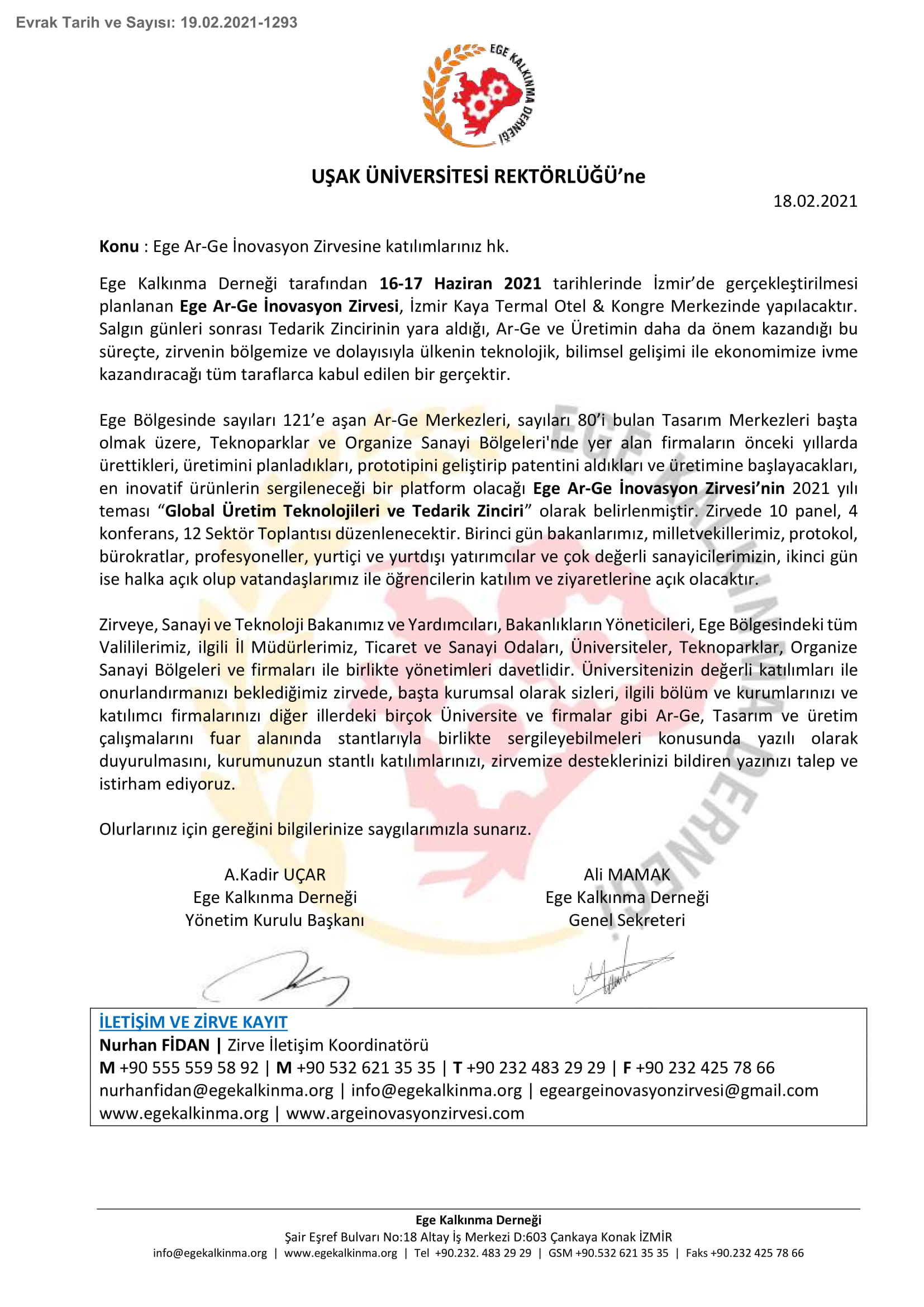 Ege Ar-Ge İnovasyon Zirvesine Katılımlarınız Hk.