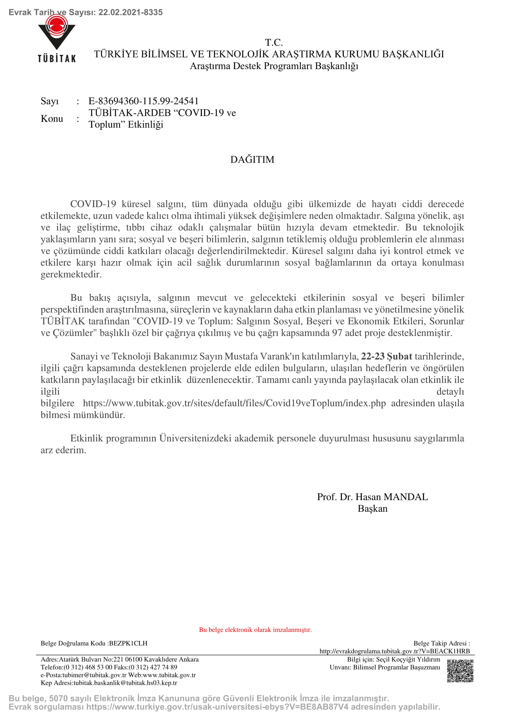 Ana Sayfa / Duyurular / TÜBİTAK-ARDEB “COVID-19 ve Toplum” Etkinliği