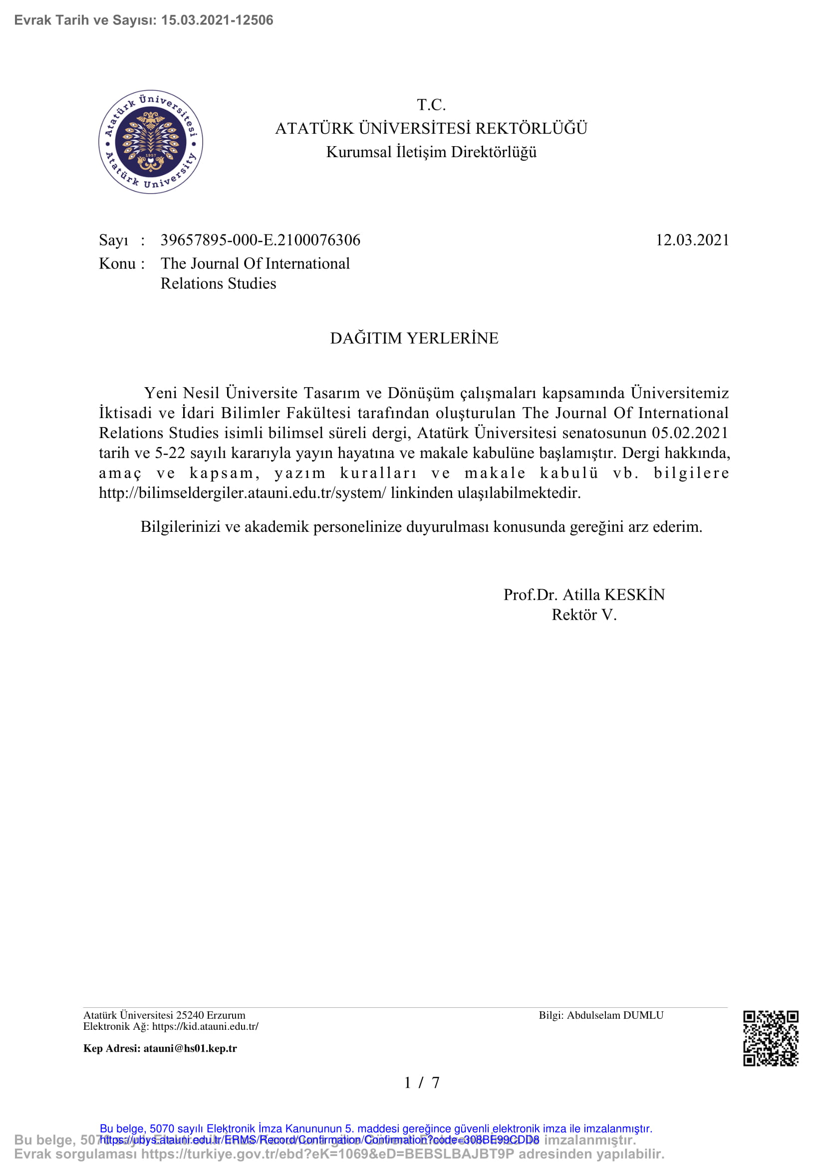 Ana Sayfa / Duyurular / The Journal Of International Relations Studies