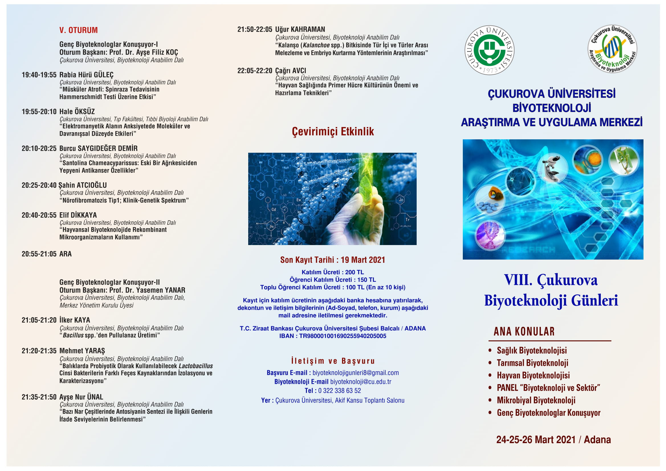 Ana Sayfa / Duyurular / VIII. Çukurova Biyoteknoloji Günleri Duyurusu Hk.