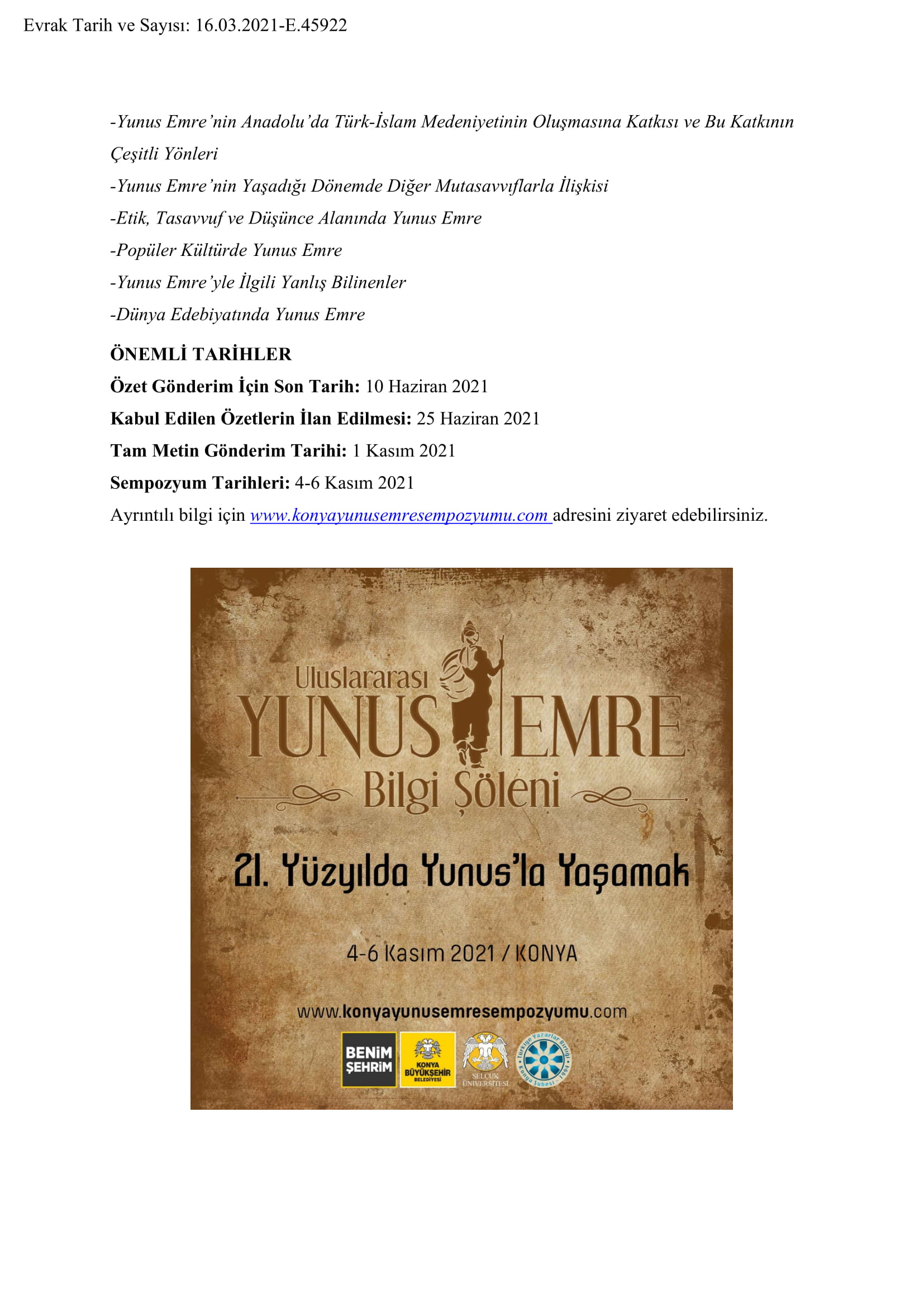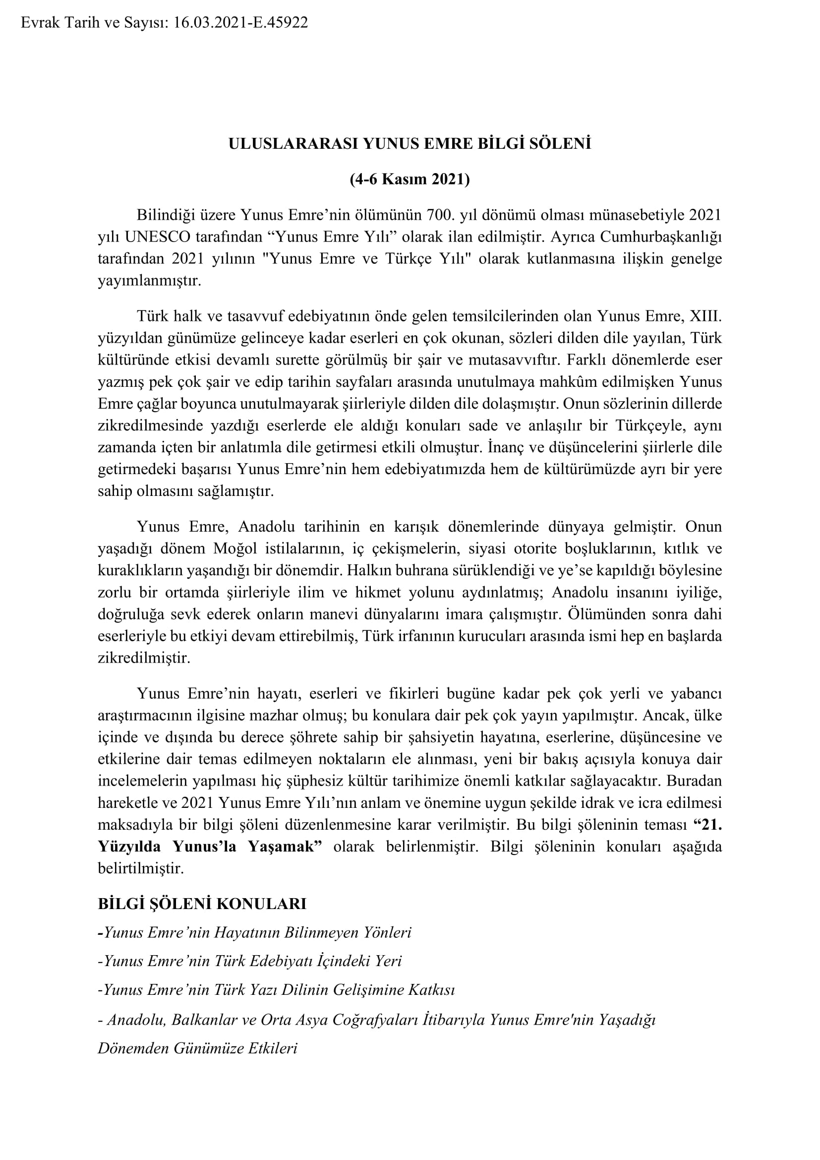 Ana Sayfa / Duyurular / Uluslararası Yunus Emre Bilgi Şöleni