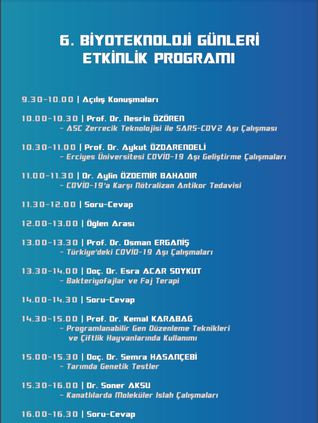 Ana Sayfa / Duyurular / 6. Biyoteknoloji Günleri Etkinliği Duyurusu