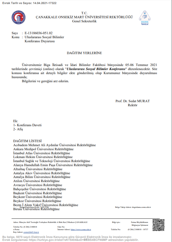 Ana Sayfa / Duyurular / Uluslararası Sosyal Bilimler Konferansı Duyurusu
