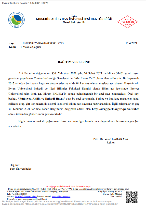 Ana Sayfa / Duyurular / Makale Çağrısı