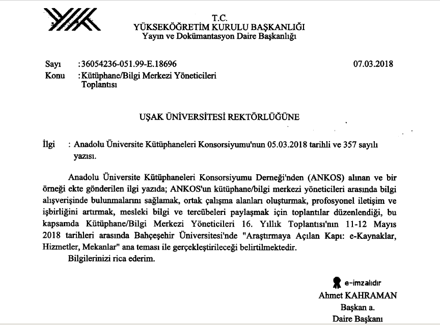 Ana Sayfa / Duyurular / Kütüphane/Bilgi Merkezi Yöneticileri Toplantısı