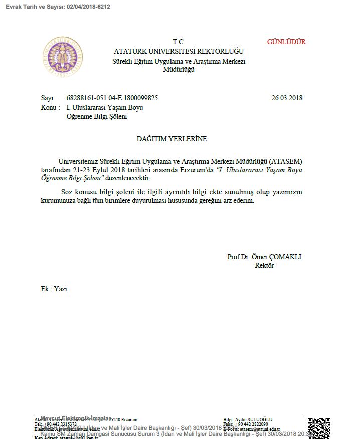 Ana Sayfa / Duyurular / I. Uluslararası Yaşam Boyu Öğrenme Bilgi Şöleni