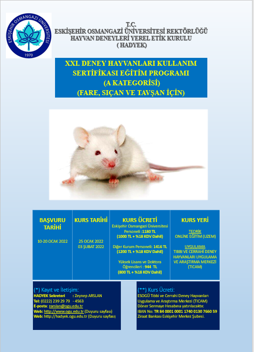 Ana Sayfa / Duyurular / Deney Hayvanları Kullanımı ile İlgili Sertifikalı Eğitim Kursu