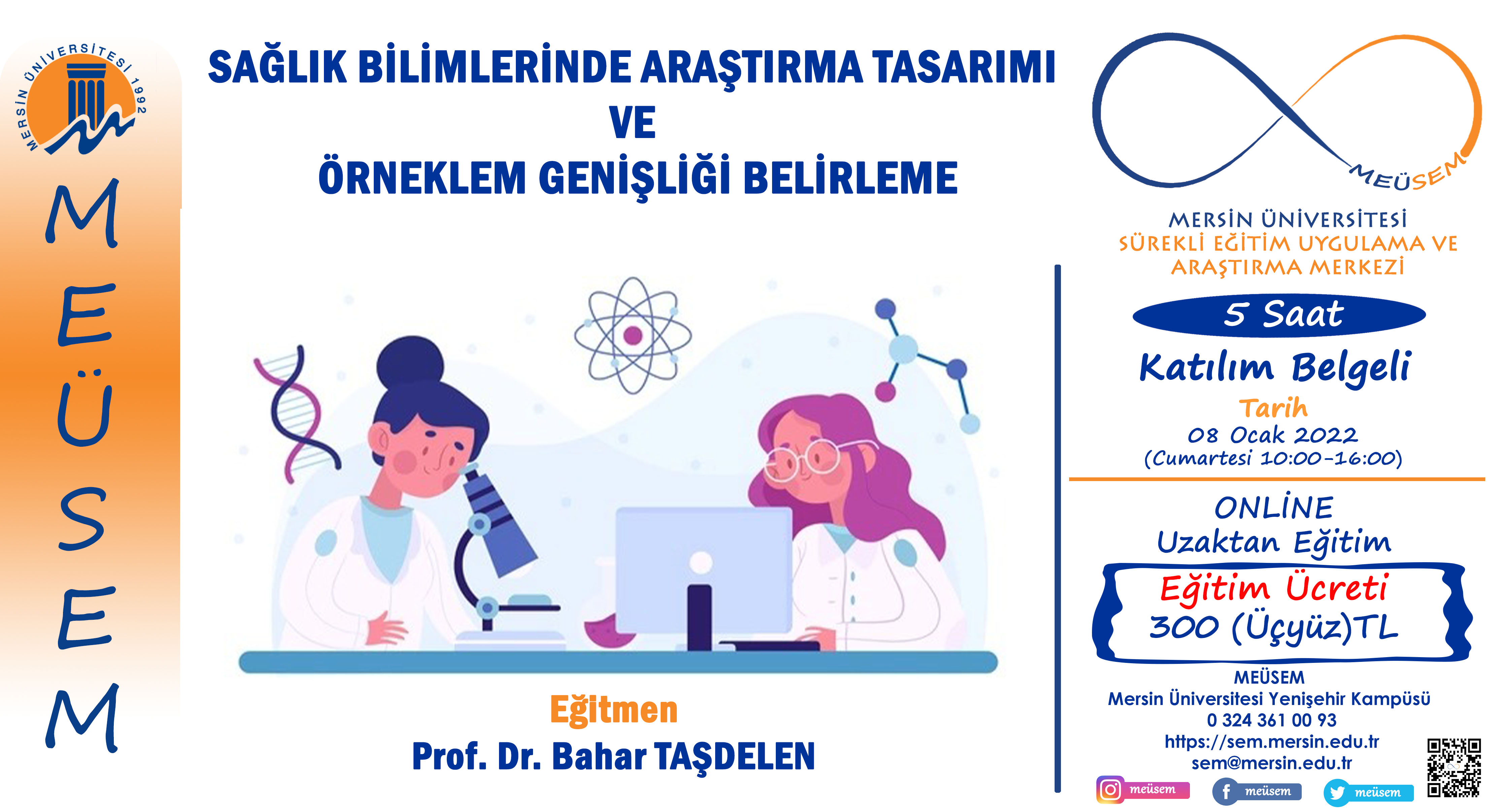Ana Sayfa / Duyurular / Sağlık Bilimlerinde Araştırma Tasarımı ve Örneklem Genişliği Belirleme Eğitimi