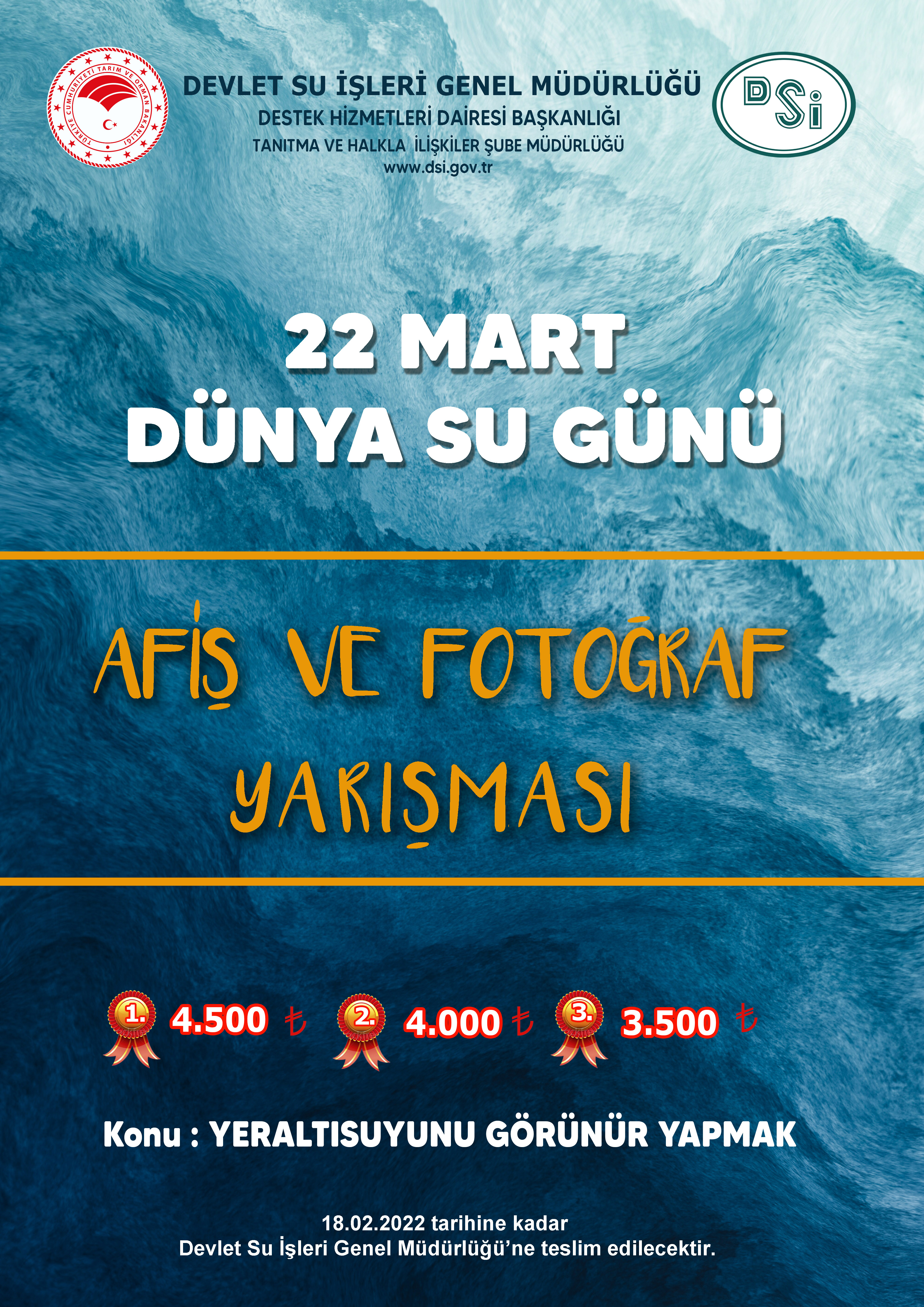 Ana Sayfa / Duyurular / Yarışma (22 Mart Dünya Su Günü Hk. Afiş ve Fotoğraf Yarışması)