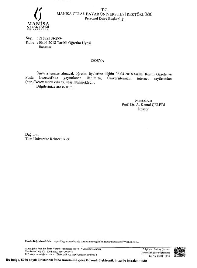 Ana Sayfa / Duyurular / 06.04.2018 Tarihli Öğretim Üyesi İlanımız