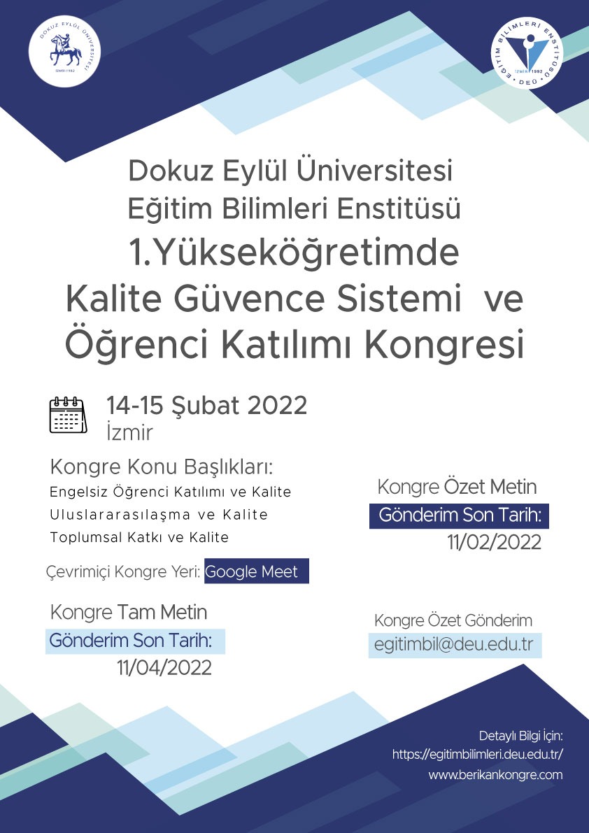 Ana Sayfa / Duyurular / 1.Yükseköğretimde Kalite Güvence Sistemi ve Öğrenci Katılımı Kongresi