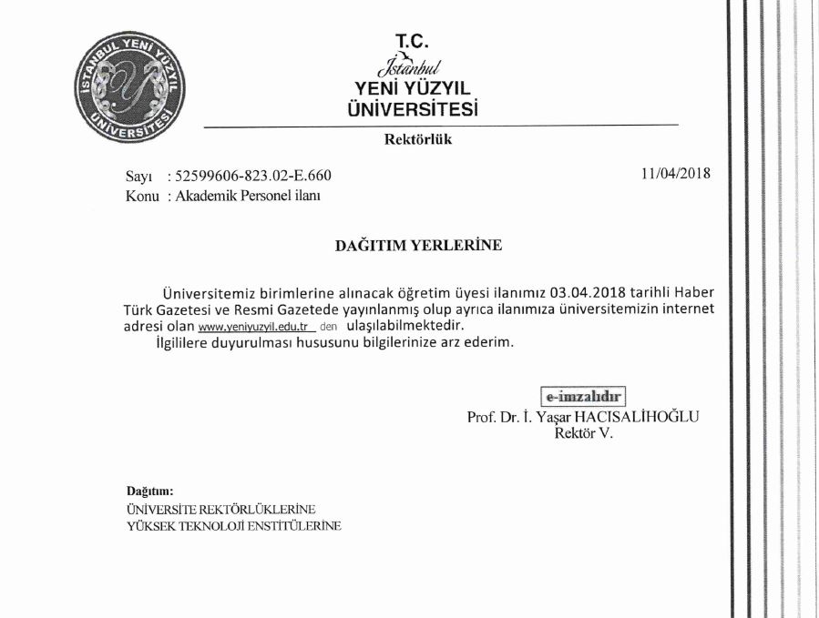 Ana Sayfa / Duyurular / Akademik Personel İlanı