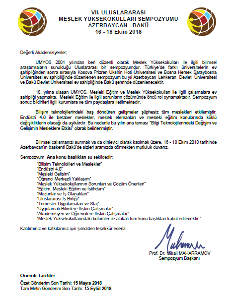 Ana Sayfa / Duyurular / VII. Uluslararası Meslek Yüksekokulları Sempozyumu
