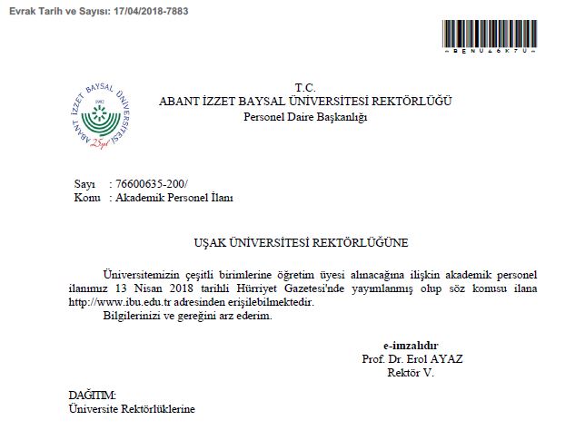 Ana Sayfa / Duyurular / Akademik Personel İlanı