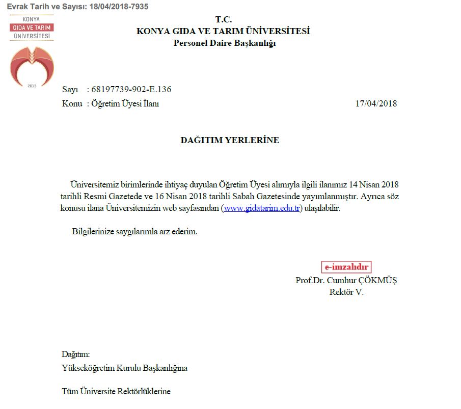 Ana Sayfa / Duyurular / Öğretim Üyesi İlanı