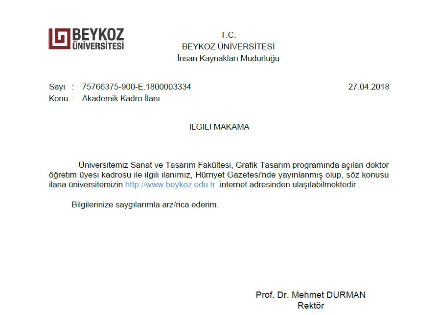 Ana Sayfa / Duyurular / Akademik Kadro İlanı