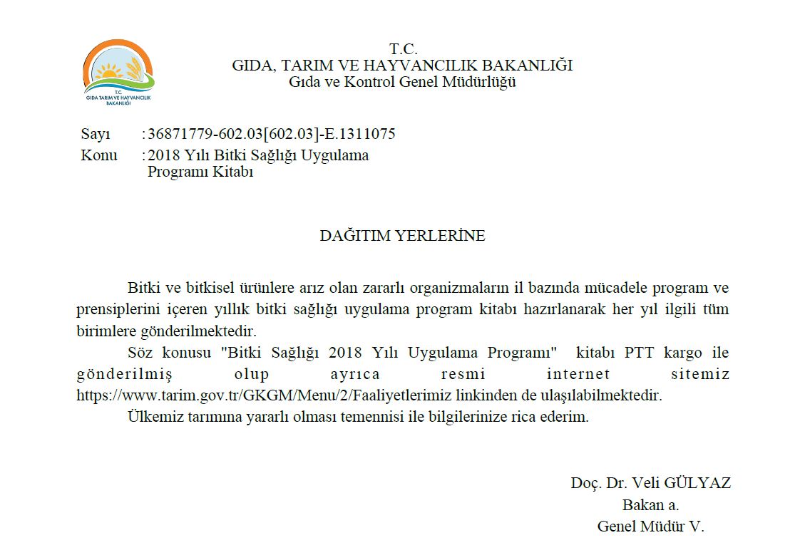 Ana Sayfa / Duyurular / 2018 Yılı Bitki Sağlığı Uygulama Program Kitabı