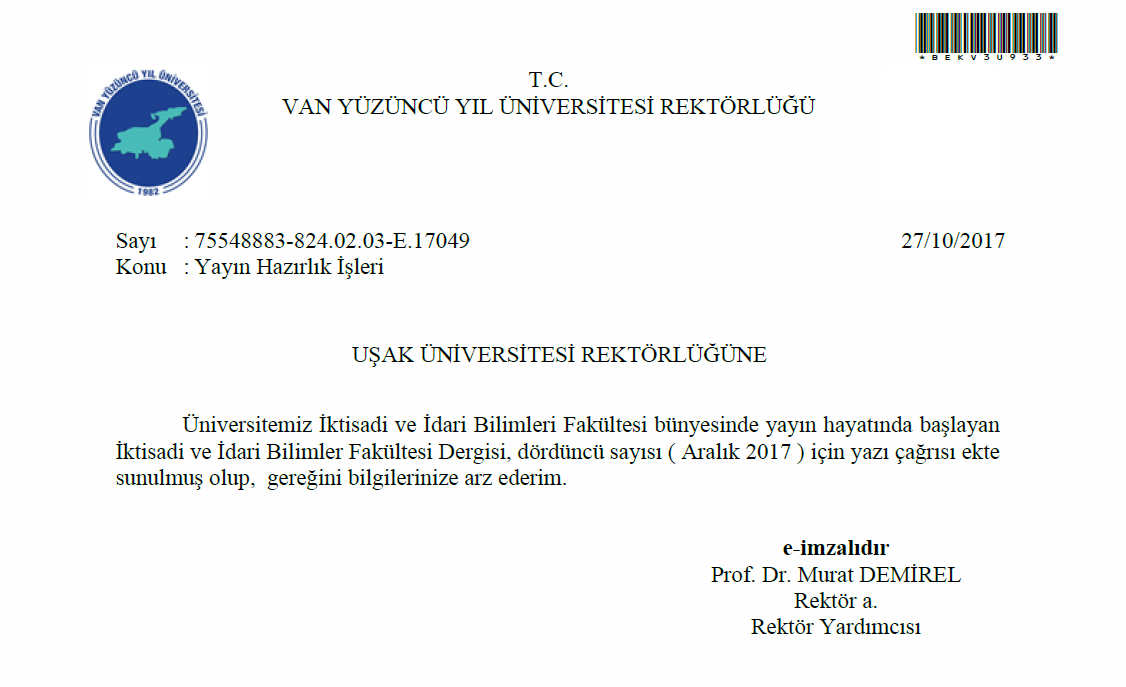 Ana Sayfa / Duyurular / Van Yüzüncü Yıl Üniversitesi İktisadi ve İdari Bilimler Dergisi