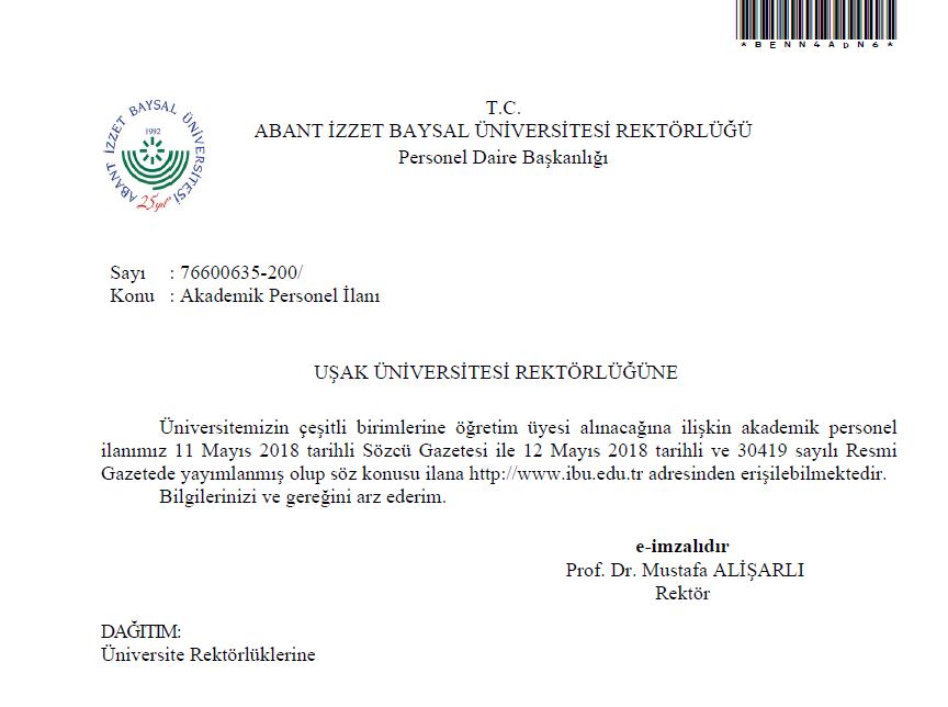 Ana Sayfa / Duyurular / Akademik Personel İlanı