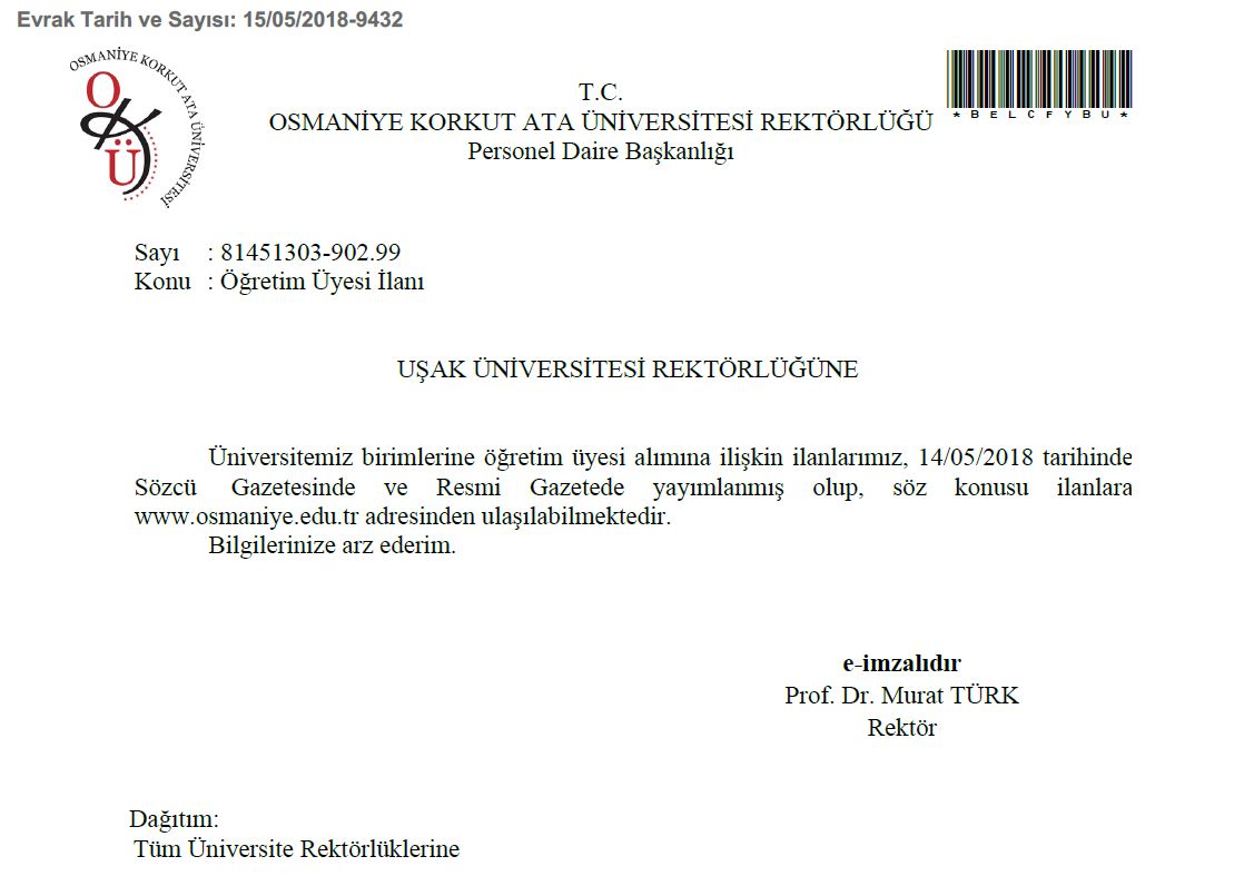 Ana Sayfa / Duyurular / Öğretim Üyesi İlanı