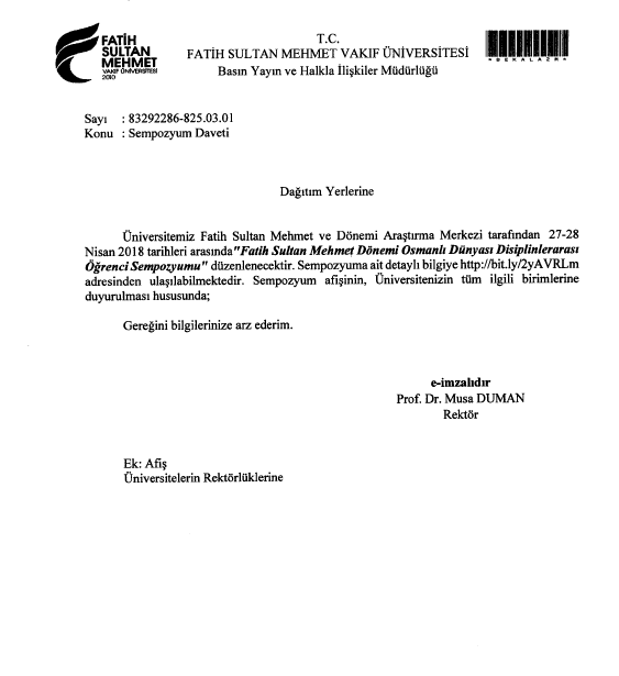 Ana Sayfa / Duyurular / Fatih Sultan Mehmet Dönemi Osmanlı Dünyası Disiplinlerarası Öğrenci Sempozyumu