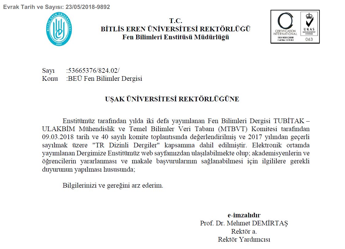 Ana Sayfa / Duyurular / BEÜ Fen Bilimler Dergisi