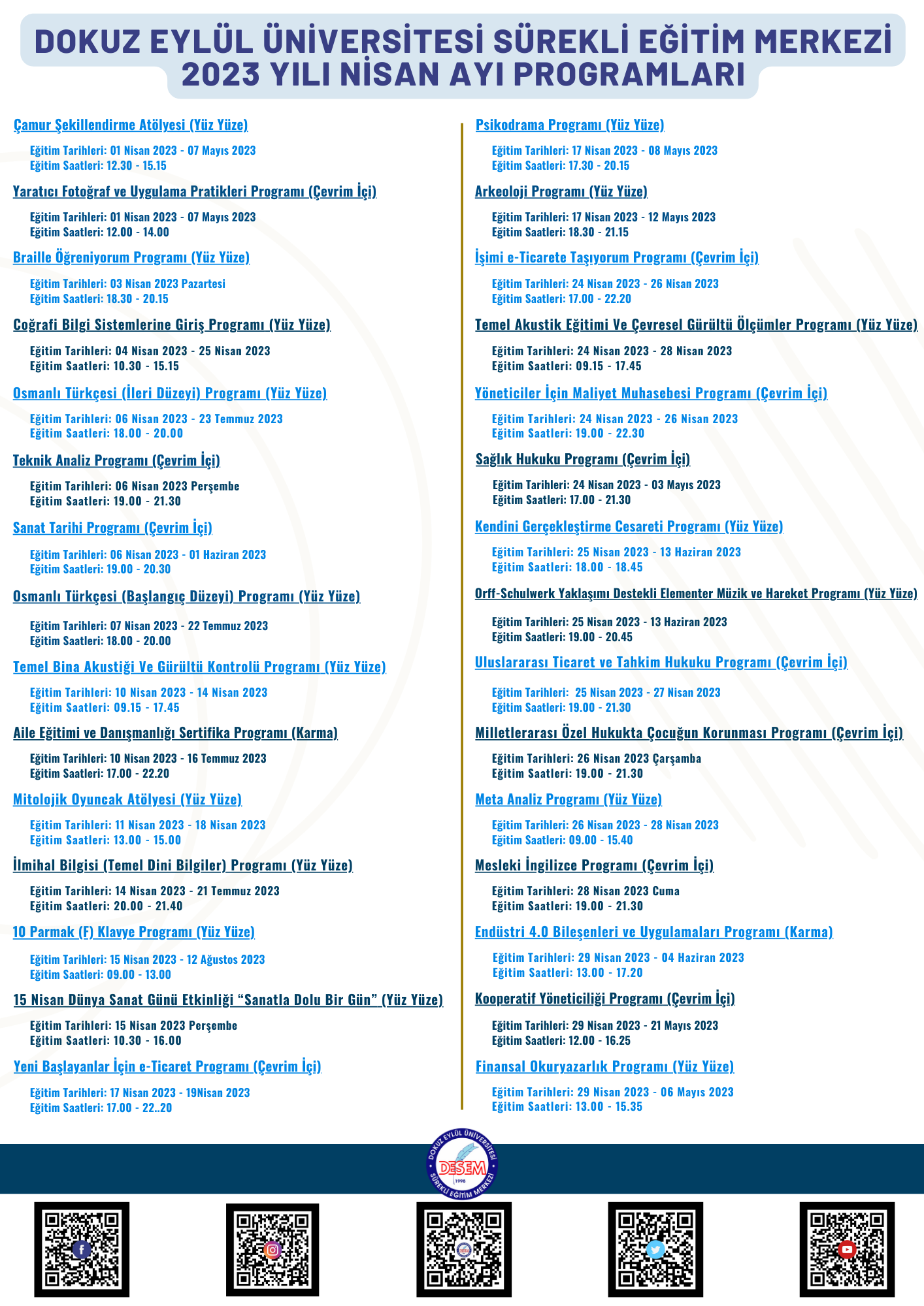 Dokuz Eylül Üniversitesi Sürekli Eğitim Merkezi (DESEM) 2023 Yılı Nisan Ayı Programlar
