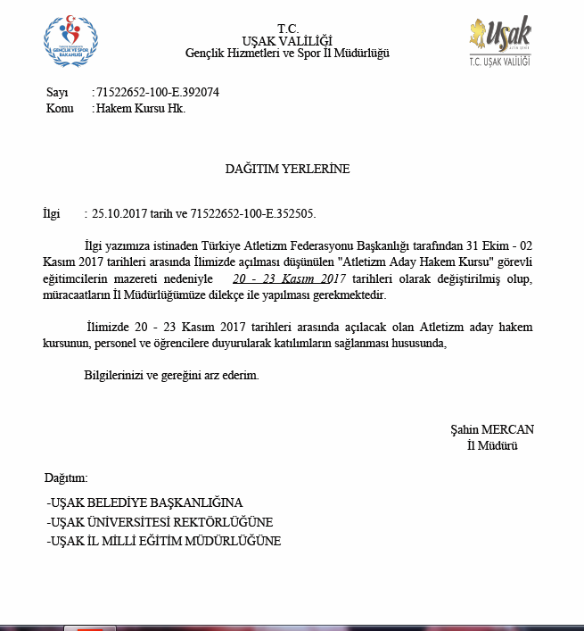 Ana Sayfa / Duyurular / Uşak Valiliği Gençlik Hizmetleri ve Spor İl Müdürlüğü Hakem Kursu Hakkında Duyuru