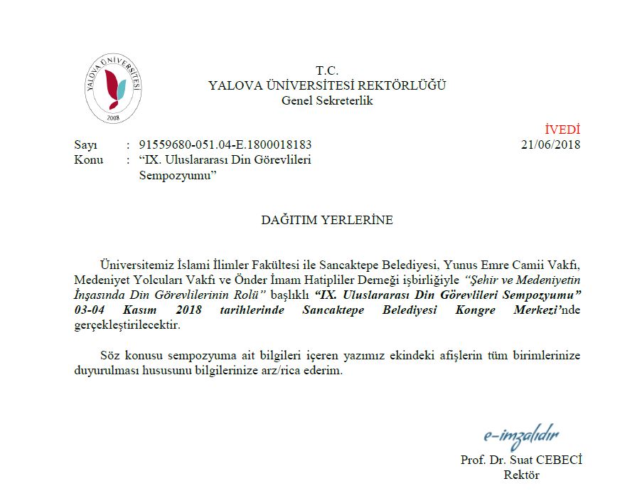 Ana Sayfa / Duyurular / “IX. Uluslararası Din Görevlileri Sempozyumu”