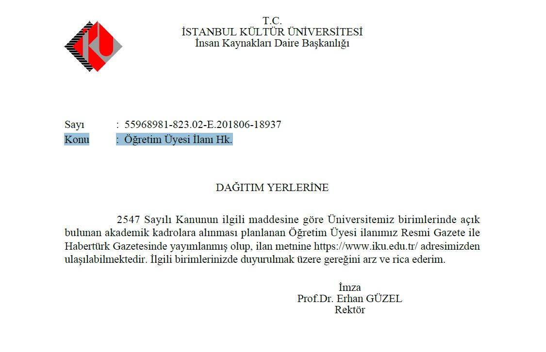 Ana Sayfa / Duyurular / Ögretim Üyesi İlanı