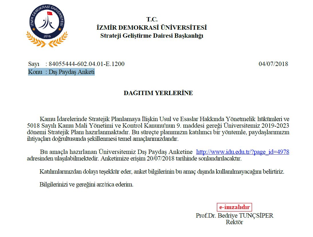 Ana Sayfa / Duyurular / Dış Paydaş Anketi