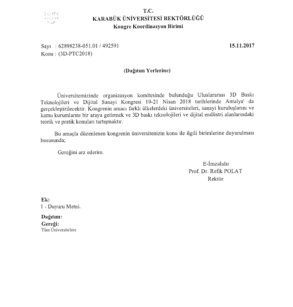 Ana Sayfa / Duyurular / Uluslararası 3D Baskı Teknolojileri ve Dijital Sanayi Kongresi